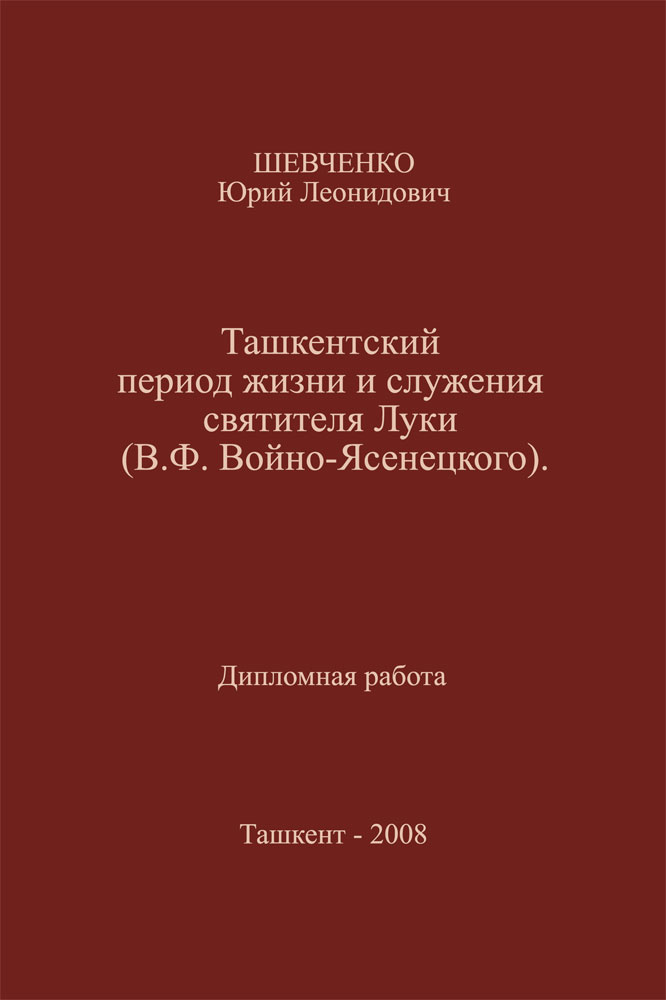 Ташкентский период жизни и служения святителя Луки (В.Ф. Войно-Ясенецкого). Дипломная работа. — Ташкент, 2008.