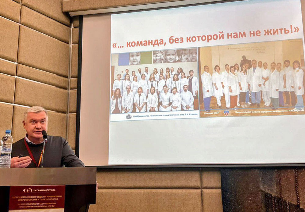 В рамках научной программы симпозиумов, посвященных проблеме роста распространенности инфекций, связанных с оказанием медицинской помощи, и устойчивости нозокомиальных возбудителей к большинству современных антибактериальных препаратов, выступили специалисты Пироговского Центра. Были представлены доклады «Микробиологический мониторинг в системе эпидемиологического надзора за инфекциями, связанными с оказанием медицинской помощи» (совместно с ЦНИИ эпидемиологии Роспотребнадзора) и «Антибиотикорезистентность в акушерских и хирургических стационарах: современные возможности сдерживания роста» (совместно с НМИЦ акушерства, гинекологии и перинатологии им. акад. В.И. Кулакова).