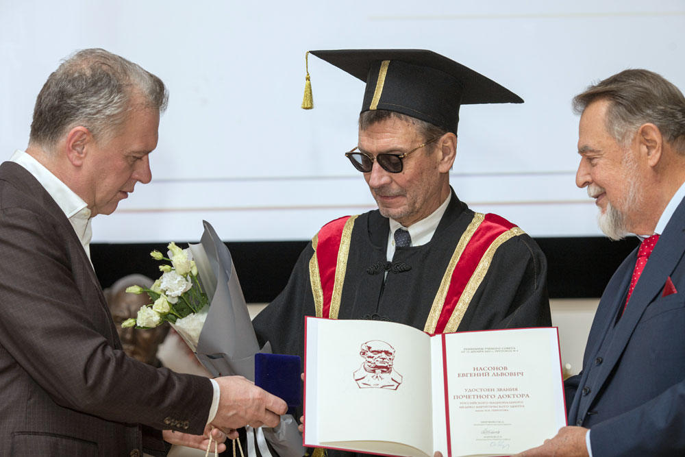 Научному руководителю Научно-исследовательского института ревматологии, академику РАН, д. м. н., профессору Евгению Львовичу Насонову пожаловано звание «Почетного доктора Пироговского Центра», вручены диплом и мантия.