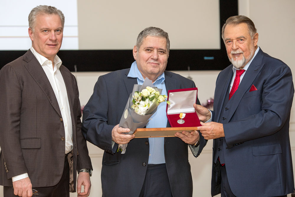 Президент Центра Юрий Леонидович Шевченко и генеральный директор Пироговского Центра Олег Эдуардович Карпов вручили благодарность Леониду Дмитриевичу Шалыгину, подчеркнув его профессиональные заслуги в становлении и развитии Института.