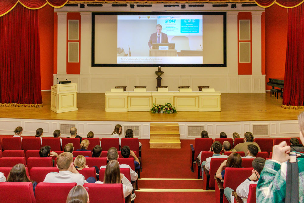 Михаил Альбертович Мурашко осветил в лекции ключевые направления государственной политики в области охраны материнства и детства, современные стандарты безопасности и основные принципы оказания медицинской помощи маленьким пациентам.