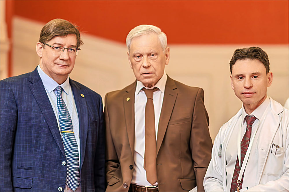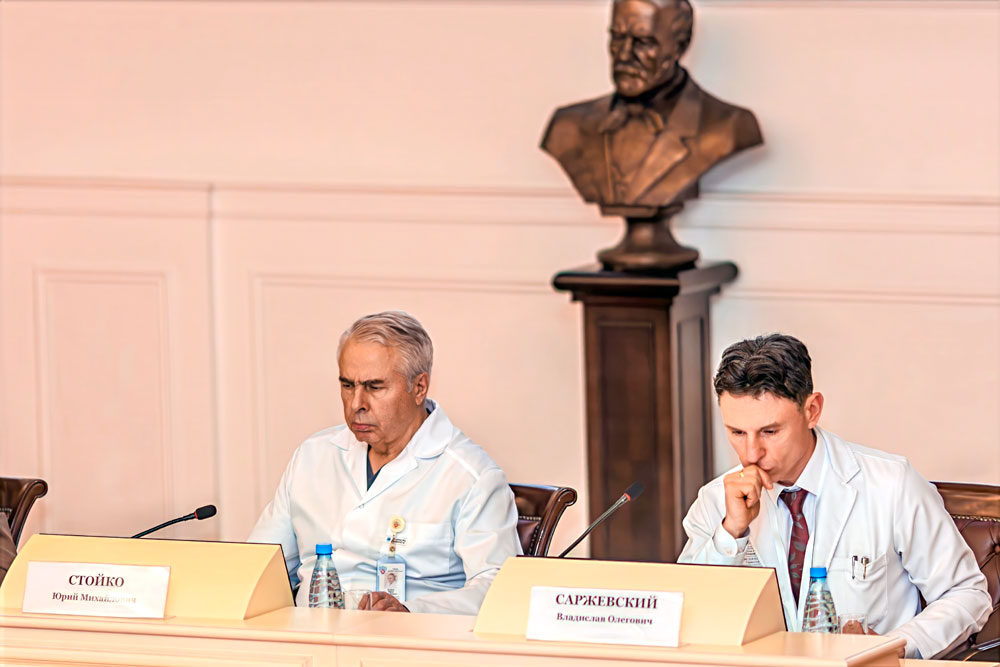 Д. м. н., профессор, заслуженный врач РФ, заслуженный деятель науки РФ Юрий Михайлович Стойко, д. м. н., профессор Владислав Олегович Саржевский