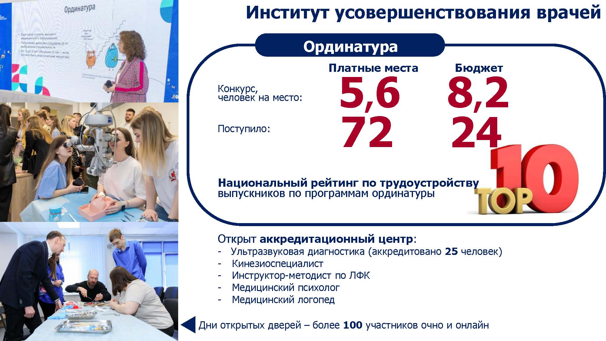 Впервые в истории Института мы приняли участие в открытом публичном конкурсе на распределение контрольных цифр приема для обучения в ординатуре за счет бюджетных ассигнований. Министерством образования были выделены бюджетные места для обучения в Институте в следующем году.