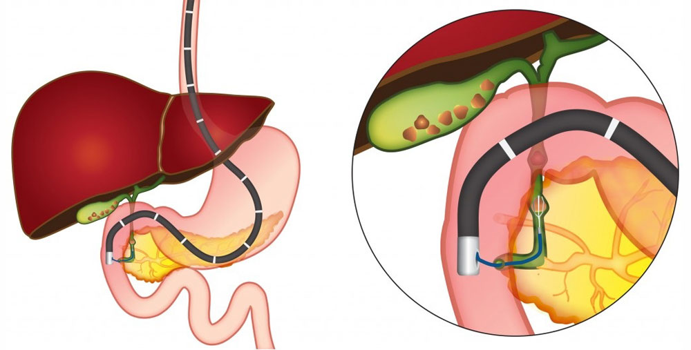 При обнаружении камней в желчных протоках (холедохолитиаза) в первую очередь необходимо извлечь конкременты из желчных путей. Оснащённость нашего стационара всем современным оборудованием позволяет выполнить операцию минимально травматично — при помощи эндоскопа под ультразвуковым и рентгенологическим контролем: эвакуировать конкременты из общего желчного протока через двенадцатиперстную кишку при помощи гастроскопа. Такие методики позволяют избежать открытого вмешательства, травматичных манипуляций на печеночных протоках.